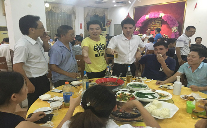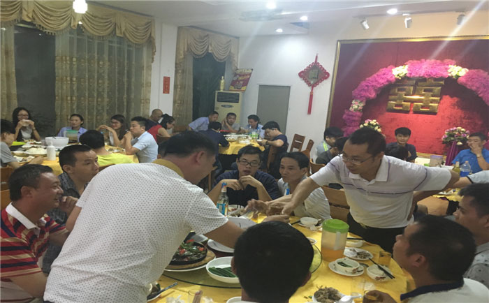 當晚的慶功宴主要分為3個篇章:辛總總結,伍助補充,領導祝酒。辛總和伍助就9月的生產情況作了總結,帶我們回顧了上月的各種甜酸苦辣,展望了未來的發展前景和宏偉目標。還不忘向全體同事的付出表示衷心的感謝與祝福。晚會上大家一邊吃著豐盛的晚餐,一邊接受著領導的祝酒,觥籌交錯間歡聲笑語不斷,湯總、伍助和毛經理還逐桌祝酒,言語之間擋不住喜悅之情。