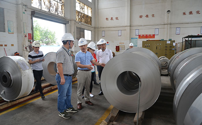 2016年11月8日,富士康科技集團采購部詹部長一行來我廠進行參觀指導工作。詳細了解了我們公司的生產(chǎn)現(xiàn)狀和未來規(guī)劃,辛總和相關(guān)的技術(shù)人員陪同詹部長等人到生產(chǎn)車間了解我們的鋼帶原材,參觀了我們的4輥軋機,20輥軋機、拉矯機的生產(chǎn)過程。